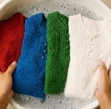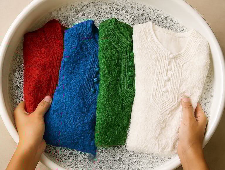 Let kurtas soak to loosen dirt without overexposing embroidery.Gently Agitate with Hands